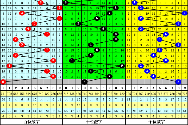 号码012路比为5:9:7,本期预计该位开出0路号码,参考号码3。
