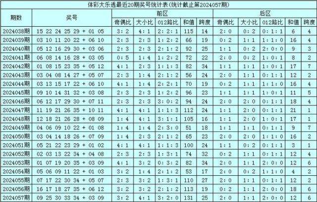 其中前区奖号012比为33:33:34,奇偶比为49:51,大小比为48:52,和值出现范围在51-131区间,跨度出现范围在14-34区段。