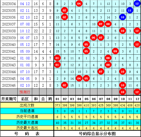 后区号码分析:在前7周星期六开奖中,后区奇偶号码个数比为8:6,奇偶号码走势基本相当,后区大小号码个数比为9:5,大号明显活跃,本期后区防全大组合,关注号码08、09、10、12,精选两码10、12。