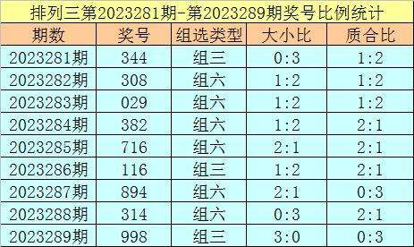 上期回顾:排列三第2023289奖号开出998,奖号质合比为0:3,大小比为3:0,跨度为1,类型为组三。