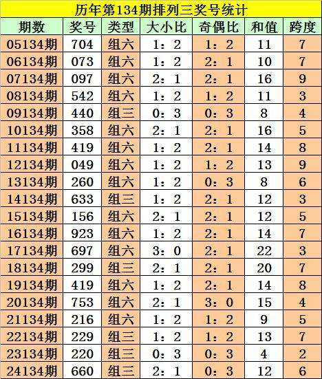历年第135期排列三奖号中,开出次数最多三码为:0、4、5,本期注意号码:4。