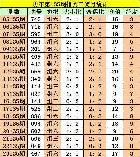 历年第135期排列三奖号:745 - 745 - 595 - 964 - 205 - 409 - 437 - 569 - 349 - 144 - 027 - 144 - 525 - 086 - 094 - 603 - 505 - 048 - 467。