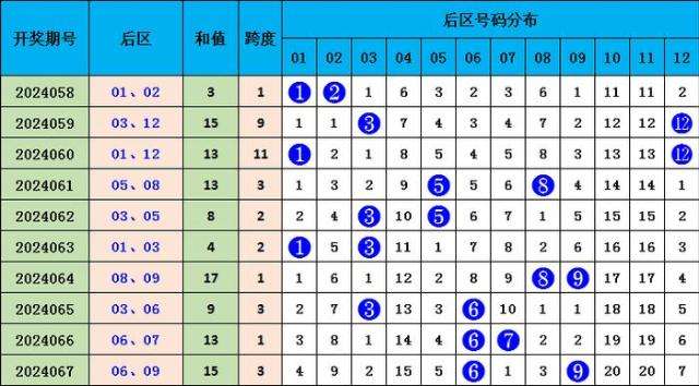 后区上期开出奖号06和09,为偶奇组合。近5期后区奇偶比为6:4,大小比为4:6。本期预计小小、奇奇组合热出,参考两码:03 05。