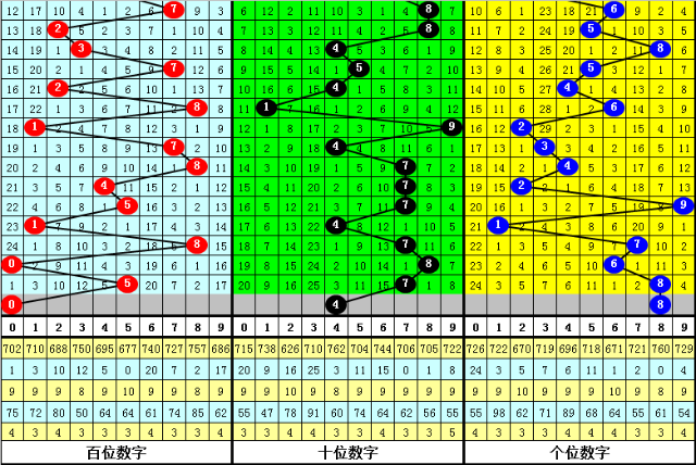 012路分析:最近10周星期三奖号012路总比例为14:10:6,012路号码轮空期数比为2:3:5,上周星期三奖号012路比为0:3:0,本周星期三预计012路号码平衡,参考012路比1:1:1。
