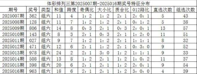 开奖公告:体彩排列三第2025016期开出奖号:963。组六,有重号:3、9,奇偶比2:1,大小比2:1,012比3:0:0,和值18,跨度6。