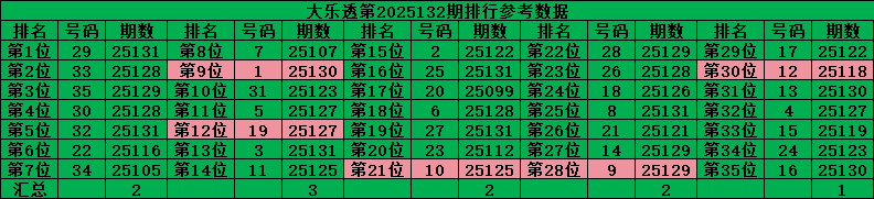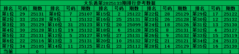 超级大乐透前区是从01-35的号码中每期开出5个号码,把历史数据按照出现次数排行后分成五个区,每个区7个号码,前二位的号码是热位号,中三位的号码是温位号,后二位的号码是冷位号,理论上每个区每期是开1个号码,对比最近开出的数据分析: