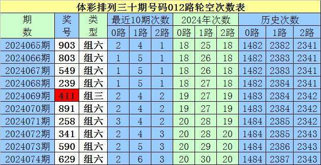 开奖回顾:排列三第2024074期奖号为:629,号码012路比为2:0:1。