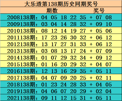 二、重号分析:在第138期历史同期奖号中重号出现6期,走势较冷,开出比例为50%,本期预计同期重号继续走冷,排除第21138期奖号。