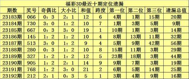开奖回顾:福彩3D第2023192期奖号:212,百位号码遗漏3期、十位号码遗漏4期、个位号码遗漏9期,遗漏总值为16期。