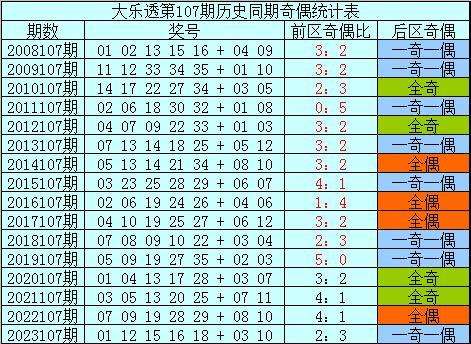 后区分析:在第107期历史同期开奖中,后区奖号奇偶比为16:16,最近5年同期后区奇偶走势为:一奇一偶、全奇、全奇、全偶、一奇一偶,今年同期看好奇数号码大热,参考号码05、09。