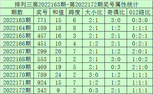 上期回顾:排列三第2022172期开奖号:342,奖号和值:9,奇偶比2:1,大小比0:3。