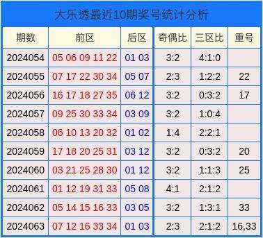 开奖回顾:大乐透第2024063期奖号:07、12、16、33、34+01、03。其中奇偶比为2:3,三区比为2:1:2,开出2枚重号16,33。