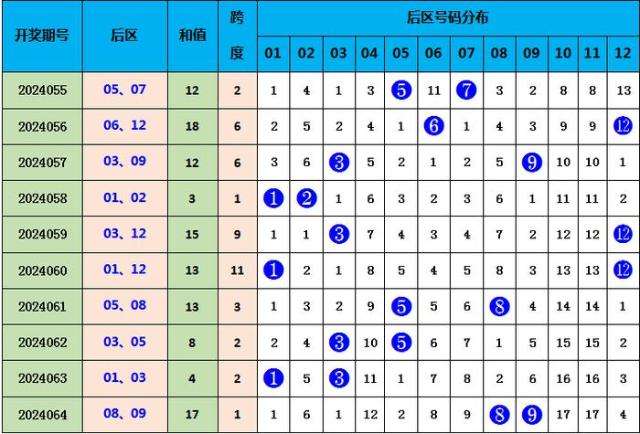 上期后区开出大大组合08 09,本期预计后区开出小小组合03 06。