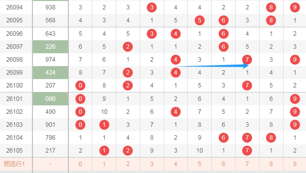 大家好,本人蔡楚门,一个玩彩十几年的老彩民,现在来本平台分享一下本人的对彩票的分析思路和看法,希望本人的文章能够给你们带来灵感和好的运气,首先感谢彩虹多多提供一个好的平台,下面走势图都是用彩虹多多平台的走势图,接下来分析一下体彩排列三第2026106期号码思路。下面文章中名词解读,合数为0 4 6 8 9,质数1 2 3 5 7,奇数1 3 5 7 9,偶数0 2 4 6 8,1路球数字1 4 7,2路球数字2 5 8,,0路球数字0 3 6 9。下面分析是从左到右定位分析。