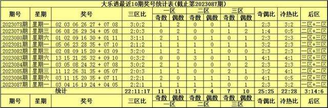 综上所述,大乐透第2023088期前区三区比看好2:2:1。
