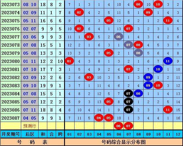 后区分析(一区01-04,二区05-08,三区09-12):上期后区开出奖号04和05,最近10期后区三区落号比为3:14:6,本期后区关注号码01、05、06、07、11,后区两码参考06、07。