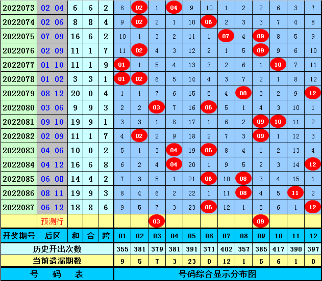 后区分析:后区上期开出全0路奖号06和12,最近20期后区0路奖号开出17个,1路奖号出现10个,2路奖号出现13个,最近8期前区0路奖号出现9个,1路奖号出现3个,2路奖号出现4个,本期后区注意号码:03、05、07、09、11,单挑两码组合03+09。