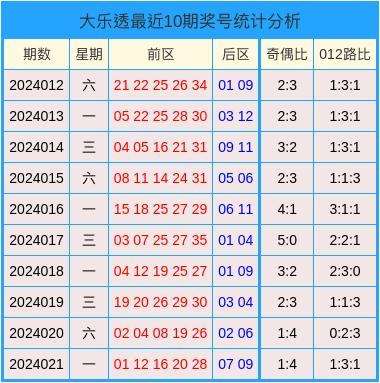 开奖回顾:第2024021期大乐透开奖号码为:01、12、16、20、28+07、09。奇偶比为1:4,012路比为1:3:1。