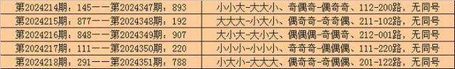 则,排列三第2024327期奖号:134,与排列三第2024352期奖号可能有相同的号码。且排列三第2024352期奖号大小比、奇偶比和012路比可以参考第2024327期奖号形态:小小小、奇奇偶和101路。