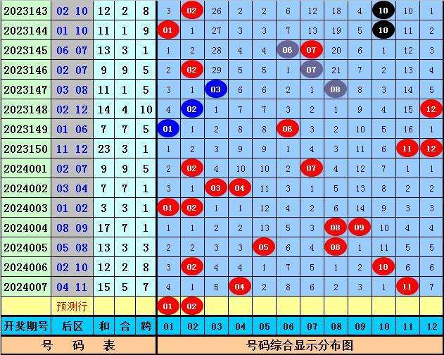 后区奖号分析:上期后区奖号为04+11,遗漏期数为3期和2期,目前后区号码01-12分别遗漏:4期、1期、5期、0期、2期、8期、6期、2期、3期、1期、0期、7期,本期后区注意号码01、02、03、09、12,两码关注01、02。