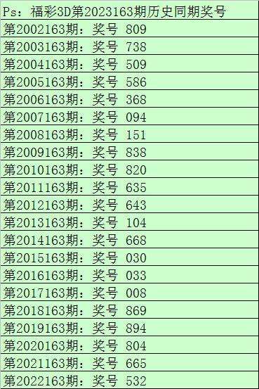 财迷福彩3D第2023163期综合推荐: