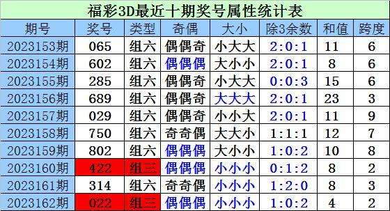 上期回顾:上期开奖奖号为022,类型:组三,偶偶偶,小小小,1:0:2,和值4,跨度2。