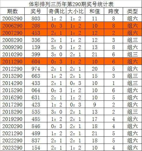 在历年排列三第291期开奖中:号码大小比为24:30,大号表现较冷,本期看好大号回补,大小比关注2:1。