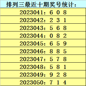 上期回顾:排列三第2023050期开奖号码为714,历史上组选出现46次,直选出现8次。