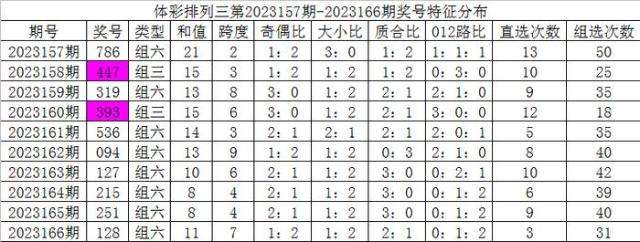 开奖公告:体彩排列三第2023166期开出奖号:128。组六,有重号:1、2,奇偶比1:2,大小比1:2,012比0:1:2,和值11,跨度7。