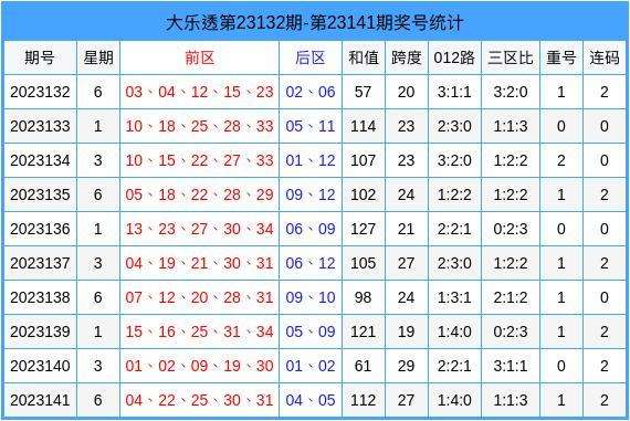 上期回顾:大乐透23141期开出奖号:前区04、22、25、30、31,后区04、05。