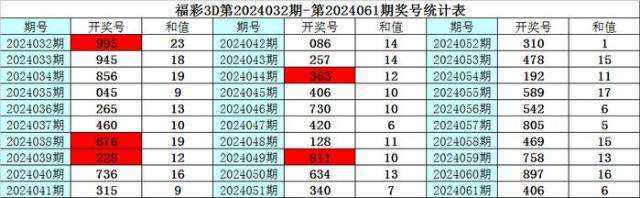 上期回顾:福彩3D第2024061期奖号为:406,其中奖号组选类型为:组六,奇偶比为0:3,大小比为1:2,012路比为2:1:0,和值为10,跨度为6。