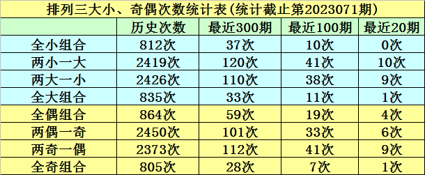 上期回顾:排列三第2023071期奖号:017。类型:组六,奇偶形态:偶奇奇,大小形态:小小大,和值:8,跨度:7。