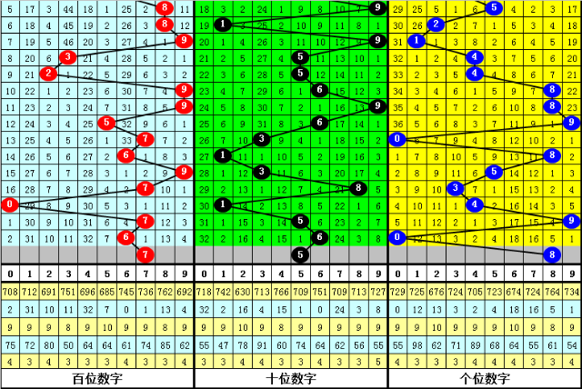 第三位上期开出奖号0,走小9点,本期注意该位走大,关注号码8。