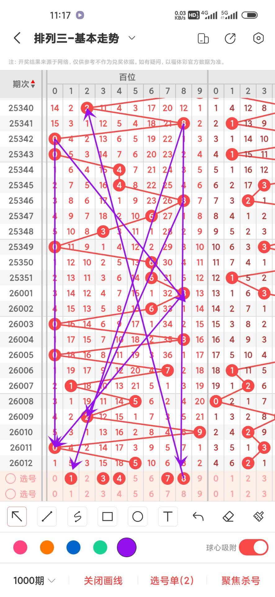 2026013期,上期百位开出奇数5,我们通过走势图来看百位上1000期,0-9下号数据和最大遗漏数据,其中0出现92次,1出现110次,2出现103次,3出现95次,4出现91次,5出现109次,6出现92次,7出现103次,8出现99次,9出现106次,0-9目前12579下号最多,我们在回过头来看最大遗漏下号,0遗漏55次,1遗漏45次,2遗漏34次,3遗漏38次,4遗漏34次,5遗漏52次,6遗漏58次,7遗漏55次,8遗漏33次,9遗漏44次,目前遗漏中0567遗漏最大,通过上面的走势分析我们可以看出目前百位上大号开始回补我们关注下,热号是01678我们可以关注下,34号码走势就有点冷淡我们可以防守,今天百位我们重点关注13478,具体看下面走势图