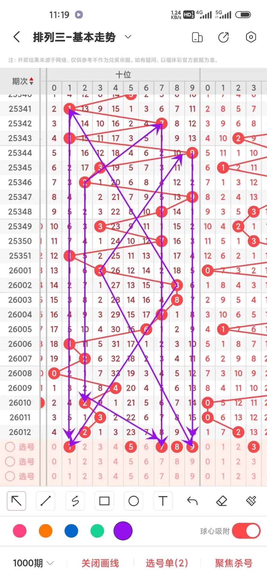 2026013期,上期个位开出偶数2,我们通过走势图来看百位上1000期,0-9下号数据和最大遗漏数据,其中0出现101次,1出现104次,2出现85次,3出现109次,4出现104次,5出现104次,6出现94次,7出现105次,8出现105次,9出现89次,0-9目前差别不大,我们在回过头来看最大遗漏下号,0遗漏45次,1遗漏45次,2遗漏63次,3遗漏44次,4遗漏41次,5遗漏53次,6遗漏44次,7遗漏31次,8遗漏40次,9遗漏54次,目前遗漏中259遗漏最大,通过上面的走势分析我们可以看出目前个位上小号继续下号我们关注下,热号是168我们可以关注下,3457号码走势就有点冷淡我们可以防守,今天个位我们重点关注13457,具体看下面走势图