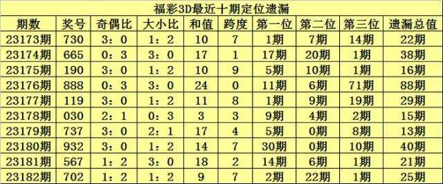 开奖回顾:福彩3D第2023182期奖号:702,百位号码遗漏2期、十位号码遗漏22期、个位号码遗漏1期,遗漏总值为25期。