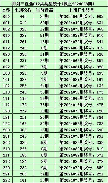 上期回顾:体彩排列三第2024088期开出奖号:819,其012路比为1:1:1,奖号012路类型为:210。