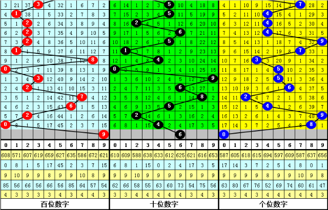 其中,号码0-9开出次数分别为:号码0开出3次、1开出2次、2开出5次、3开出2次、4开出3次、5开出4次、6开出3次、7开出2次、8开出3次、9开出3次。