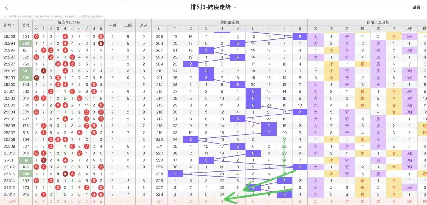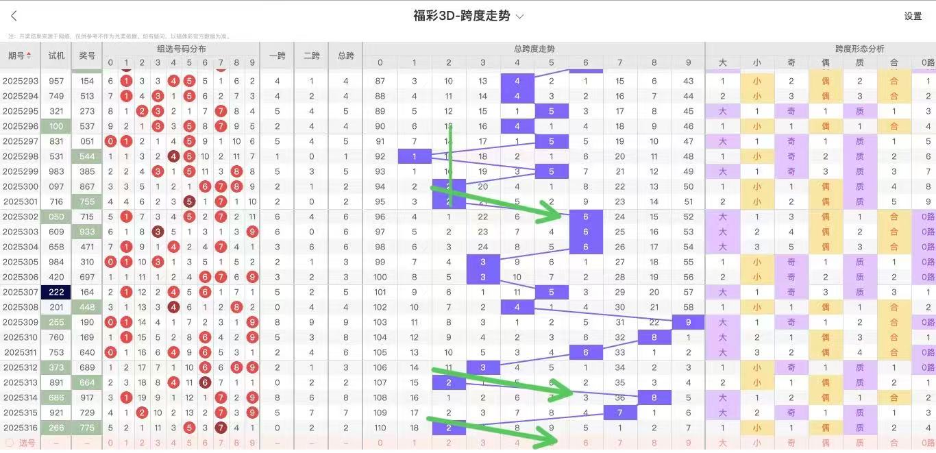 根据走势对跨度观察统计得到以下分析结果: