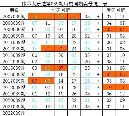 体彩大乐透第039期历史上已开出了15次,其奖号分别为: