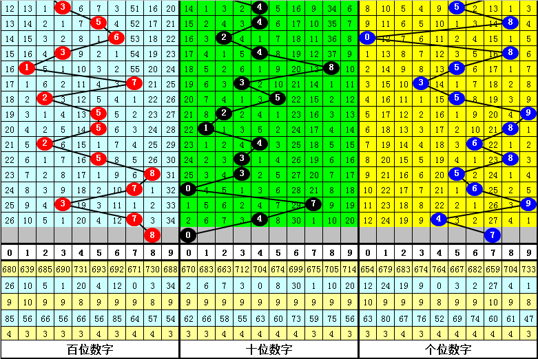 中号球:上期奖号为4,开出小号、偶号,该位前10次开出小号、偶号的现象时其奖号分别为:102、243、629、345、548、620、348、529、246、706,其中中号球012路比为2:5:3。