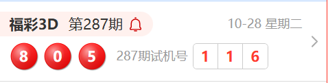 福彩3D第287期开奖结果为:805
