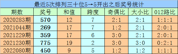 1、最近两期排列三十位号码开出号码分别为5和5,历史上十位号码连续两期同时出现号码5和5的奖号共开出50期。最近五次下期开出号码为:570、269、359、775、450;