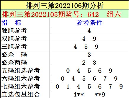 开奖回顾:排列三第2022105期开出奖号642,奖号012路比为1:1:1,大小比为1:2,奇偶比为0:3,最近三年第106期同期开出奖号为:第2019106期:384、第2020106期:440、第2021106期:733。