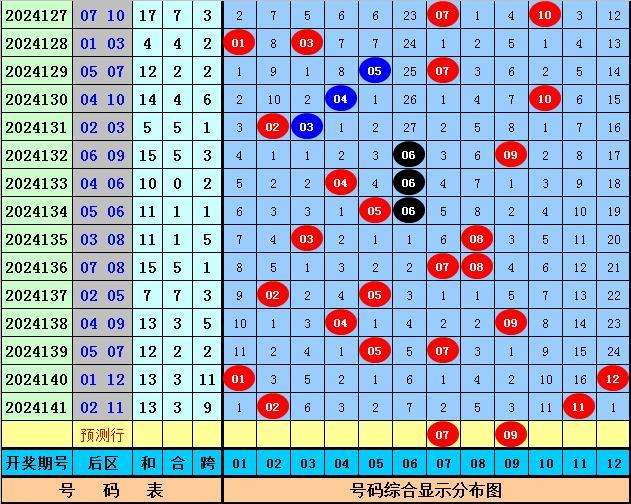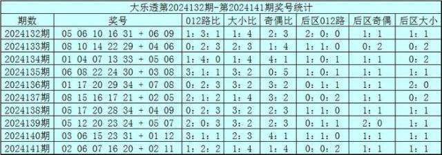 赵研大乐透第2024142期奖号012路分析:
