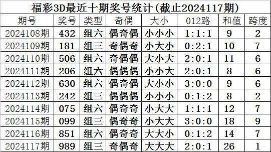 开奖回顾:福彩3D第2024117期奖号为989,奖号形态为:组三、大大大、2:0:1、奇偶奇。