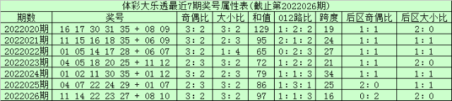 开奖回顾:大乐透第22026期开出11、14、22、23、27+08、10。前区特征:奇偶比:3:2,大小比:3:2,首尾间距:16。