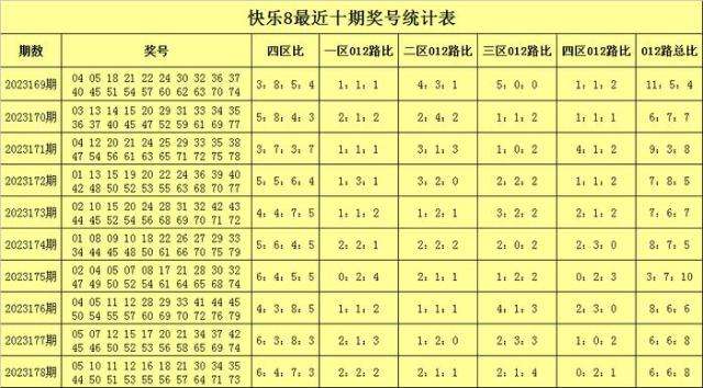 福彩快乐8第2023178期开奖回顾:05 10 11 12 16 18 21 30 34 35 44 50 51 53 55 56 57 64 71 73,其中奖号四区比为6:4:7:3,012路比为6:6:8,和值为766,跨度为68。