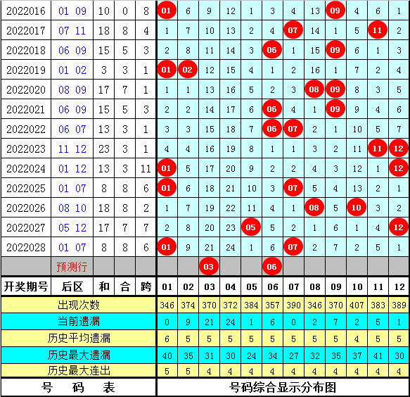 后区分析:上期后区奖号为01+07,本期后区排除重号,四码参考03、04、06、12。