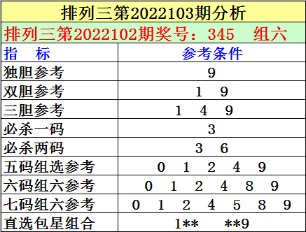 4。本期独胆参考:9。